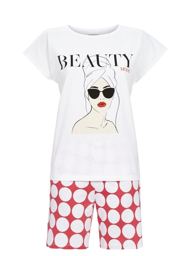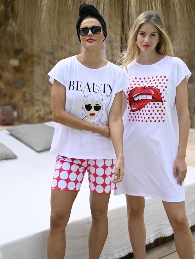 Piżama Ringella jest zaprojektowana z myślą o maksymalnym komforcie użytkowania. Wyposażona w okrągły dekolt oraz krótki rękaw, gwarantuje swobodę ruchów i uczucie przewiewności, co jest szczególnie ważne podczas cieplejszych nocy. Fason piżamy zapewnia doskonałe dopasowanie do sylwetki, podkreślając kobiece kształty w subtelny sposób. Krótkie nogawki dodają jej lekkości i sprawiają, że jest idealna na każdą noc w roku.