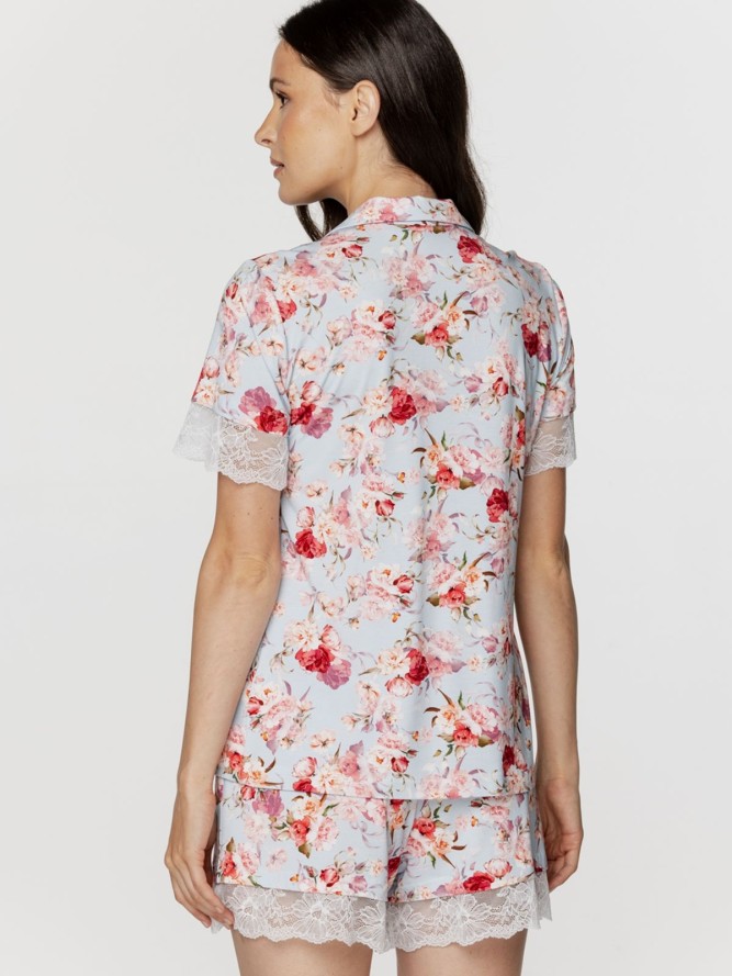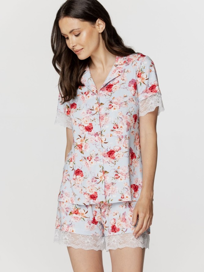 Model cechuje praktyczny fason - rozpinana z przodu, co ułatwia zakładanie i zdejmowanie. Stonowany kołnierzyk dodaje klasy i wpisuje się w aktualne trendy mody nocnej. Krótka długość nogawek sprawia, że jest to idealne rozwiązanie na cieplejsze noce.