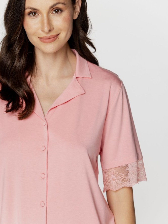 Piżama damska COEMI 252C105 to idealny wybór dla kobiet ceniących połączenie wygody z elegancją. Ta wyjątkowa piżama w kolorze różowym z pewnością zachwyci każdą miłośniczkę stylowej bielizny nocnej. Rozpinany fason z eleganckim kołnierzykiem nie tylko prezentuje się szykownie, ale także ułatwia zakładanie, co docenią osoby, które cenią sobie praktyczność. Krótkie nogawki sprawiają, że piżama jest idealna na cieplejsze noce, zapewniając odpowiednią cyrkulację powietrza i komfort. Wykonana z najwyższej jakości materiałów, gwarantuje trwałość oraz wyjątkową miękkość dotyku. Piżama COEMI 252C105 łączy w sobie funkcjonalność z wyrafinowaniem, co czyni ją doskonałym wyborem na co dzień, a także na wyjątkowe okazje. Szukając idealnej piżamy damskiej, która łączy rozpinany krój z krótkimi nogawkami i stylowym kołnierzykiem, ta propozycja spełni wszystkie oczekiwania, zapewniając wygodę oraz atrakcyjny wygląd.