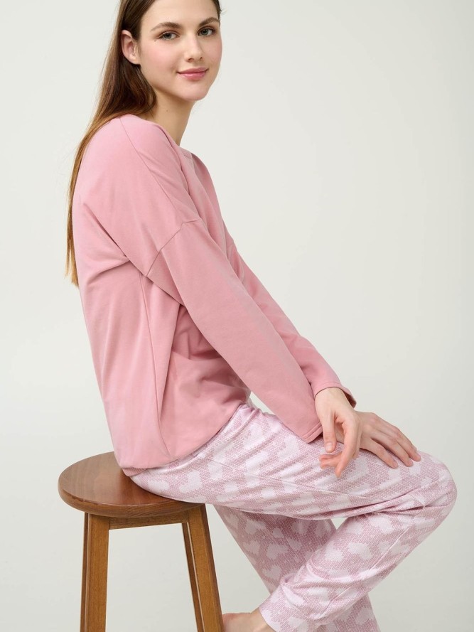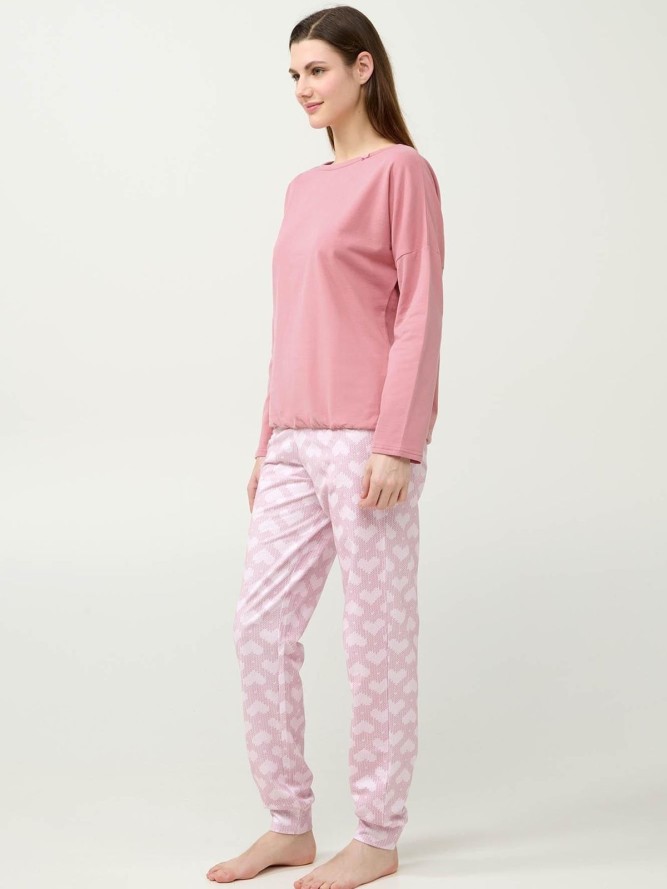 Piżama VAMP 23232 wyróżnia się klasycznym fasonem, który podkreśla kobiecą sylwetkę, jednocześnie oferując swobodę ruchów. Okrągły dekolt dodaje subtelnej elegancji, sprawiając, że ten model jest doskonałym wyborem zarówno na zimowe wieczory, jak i letnie noce. Długie nogawki gwarantują ciepło w chłodniejsze dni, a różowy kolor dodaje piżamie subtelności i dziewczęcego uroku.