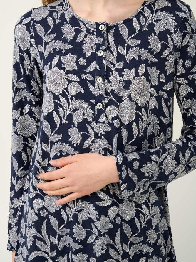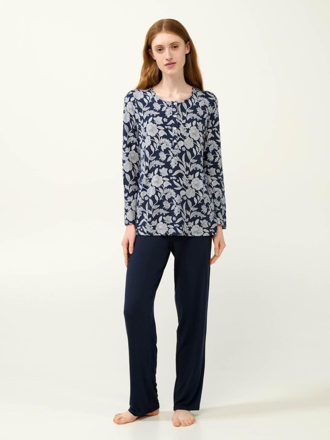Piżama posiada długie nogawki, które zapewniają ciepło w chłodniejsze noce, a motyw kwiatowy dodaje jej uroku i kobiecości. Idealnie sprawdzi się w roli prezentu dla bliskiej osoby lub jako element Twojej garderoby, który umili wieczorne chwile w domowym zaciszu.