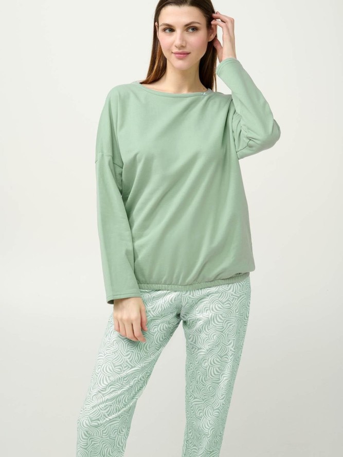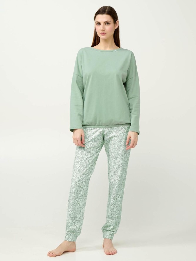 Fason piżamy VAMP jest przemyślany w każdym detalu. Wykonana z wysokiej jakości materiałów, zapewnia nie tylko miękkość, ale również trwałość. Okrągły dekolt dodaje jej subtelnego uroku, a długie nogawki sprawiają, że jest idealna na chłodniejsze noce. Kolor zielony nadaje piżamie świeżości i nowoczesnego wyglądu, stanowiąc modny akcent w każdej sypialni.