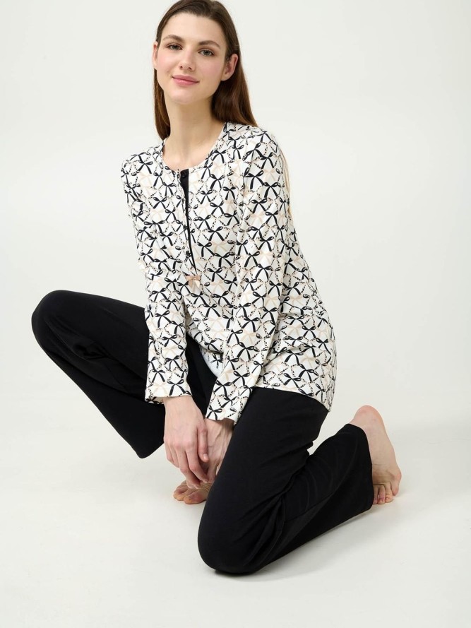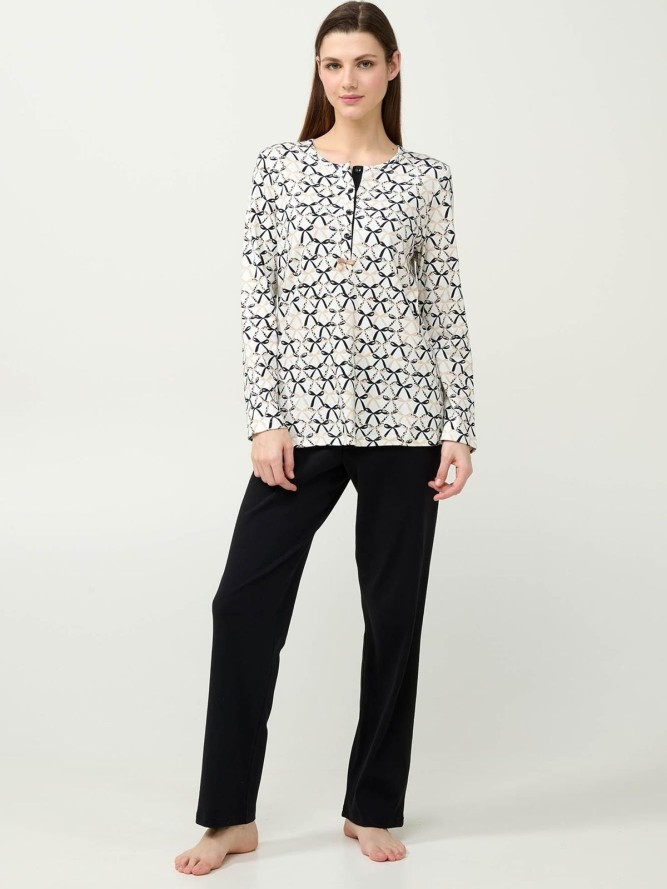 Przedstawiamy wyjątkową piżamę Vamp 23354, która połączyła elegancję z komfortem, idealna na każdą noc. Ta damska piżama charakteryzuje się okrągłym dekoltem, który subtelnie podkreśla szyję, dodając uroku każdej użytkowniczce. Fason piżamy został zaprojektowany z myślą o maksymalnej swobodzie ruchu, dzięki czemu doskonale sprawdza się podczas snu i relaksu. Model Vamp 23354 dostępny jest w wielokolorowym wzorze, który ożywi Twoją garderobę nocną. Długa nogawka zapewnia ciepło w chłodniejsze noce, gwarantując komfort użytkowania przez cały rok.