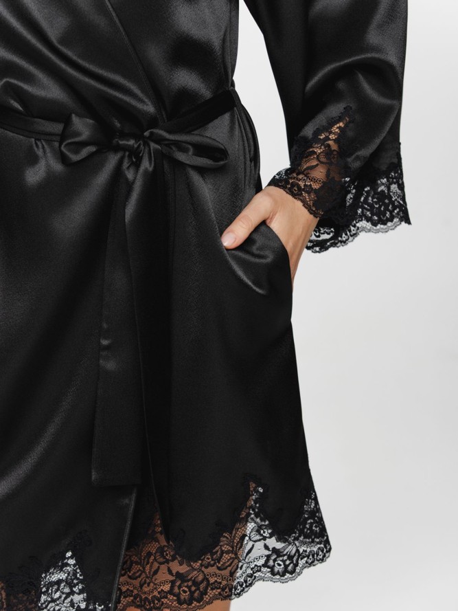 Szlafrok renomowanej marki Coemi dbającej w każdym detalu o komfort użytkowania, z bardzo wysokiej jakości materiału. Delikatny i zmysłowy, z dłuższym poszerzanym rękawem z tiulu zakończonym piękną koronką. Długość do kolan, szeroki pasek do...