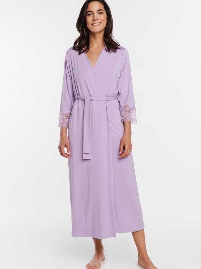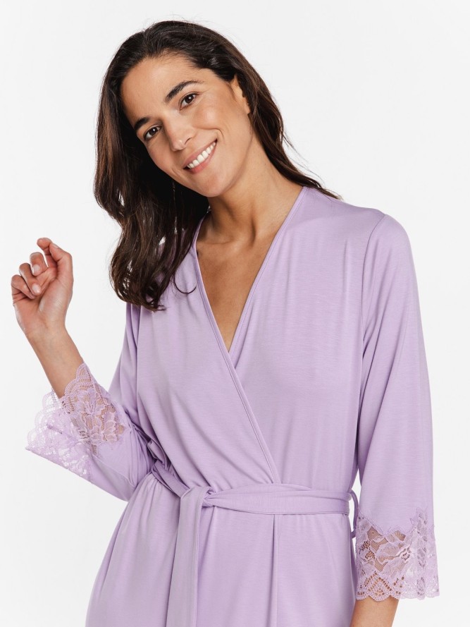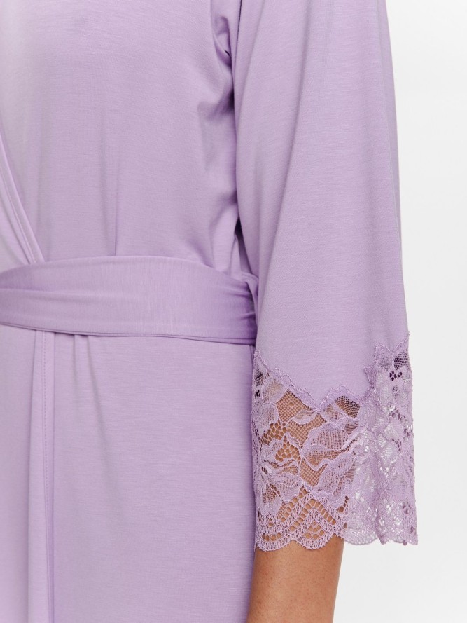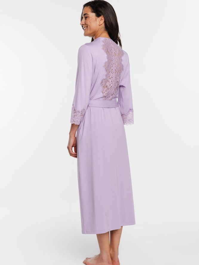 Szlafrok Coemi charakteryzuje się klasycznym, ponadczasowym fasonem z subtelnym dekoltem, który podkreśla kobiecą sylwetkę. Dzięki przemyślanej konstrukcji i długim rękawom zapewnia ciepło i wygodę. Dopasowany krój znakomicie eksponuje walory figury, a intensywny fioletowy kolor dodaje mu zmysłowego uroku. Produkt wpisuje się w kategorię premium bielizny damskiej, co sprawia, że jest idealnym wyborem na prezent dla kogoś wyjątkowego lub jako ekskluzywna przyjemność dla siebie.