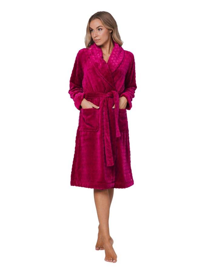 Szlafrok damski Pastunette 171252-120-1 to doskonały wybór dla kobiet ceniących sobie komfort i elegancję. Wykonany z wysokiej jakości materiałów, zapewnia przyjemne uczucie miękkości na skórze. Bordowy kolor dodaje mu szyku, sprawiając, że jest idealnym uzupełnieniem wieczornego relaksu w domowym zaciszu.