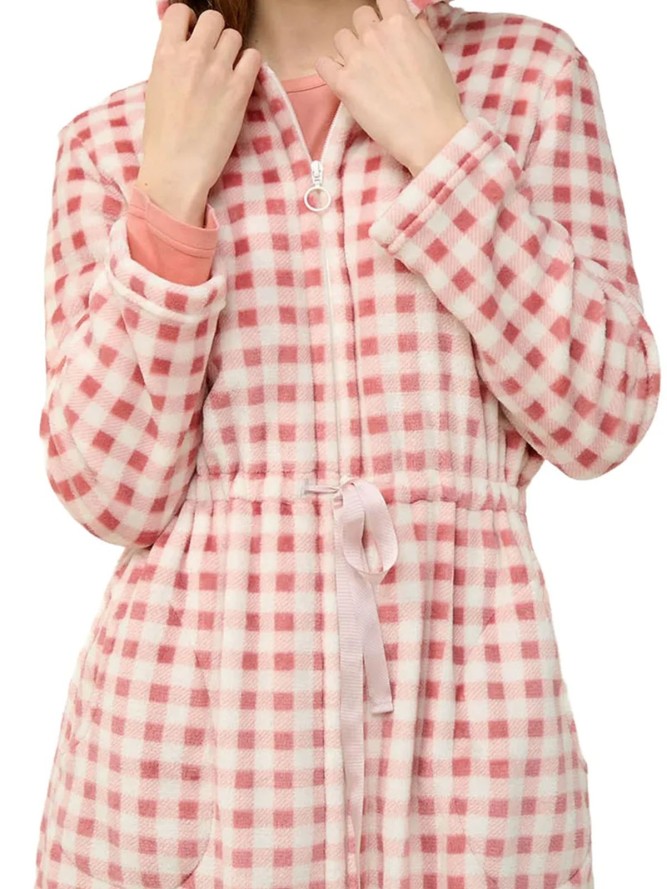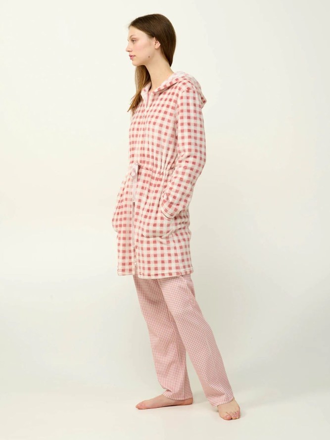 Ten szlafrok w modny motyw w kratkę z pewnością przyciągnie wzrok i doda charakteru Twoim codziennym rytuałom. Idealny na chłodniejsze wieczory, stanowi wyjątkowe połączenie funkcjonalności i estetyki.