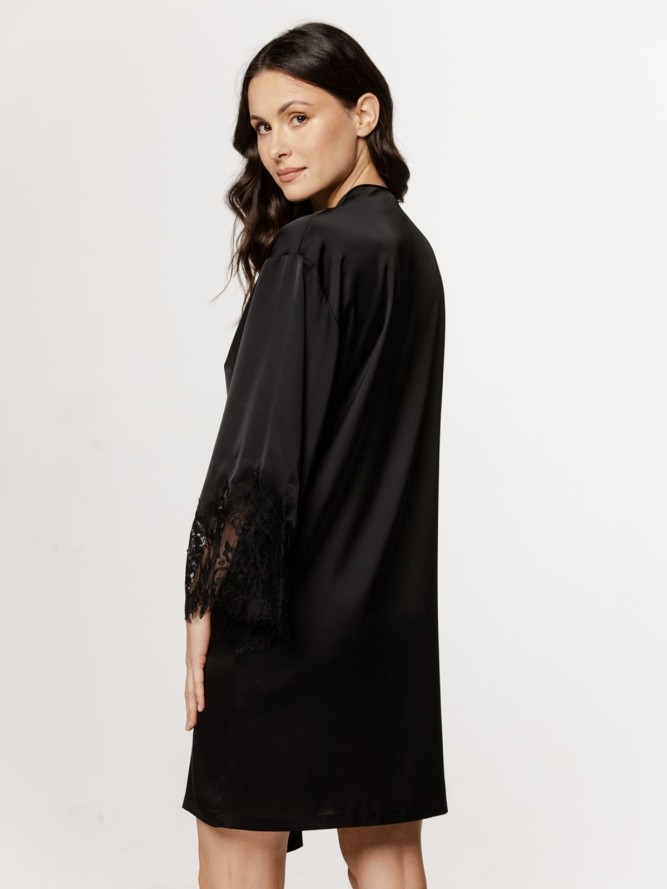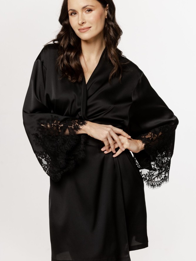 Oto idealny wybór dla kobiet poszukujących połączenia stylu i wygody. Szlafrok COEMI 261112 to kwintesencja luksusu, wykonany z najwyższej jakości materiałów, które otulą Cię w każdej chwili relaksu. Jego czarny kolor dodaje klasy i uniwersalności, pasując do każdej garderoby.