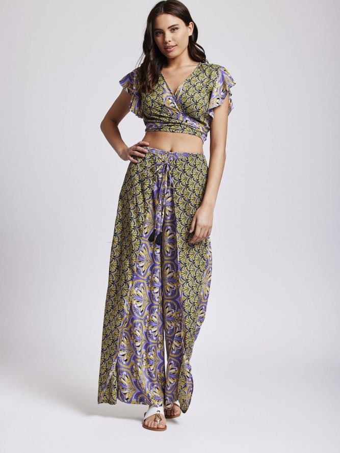 Wykonane z lekkiego materiału, spodnie Sharon charakteryzują się geometrycznym motywem, który dodaje im nowoczesności i stylu. Kolorystyka łączy w sobie subtelne odcienie, które doskonale komponują się z wakacyjnymi stylizacjami. Spodnie te nie są rozpinane, co zapewnia ich lekkość i wygodę noszenia.