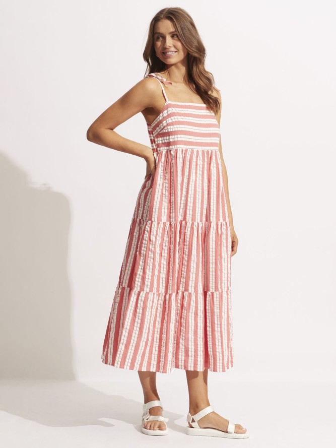 Sukienka SEAFOLLY ma prosty dekolt, który podkreśla elegancję i delikatność kreacji, a jej długa forma dodaje kobiecości i pewności siebie. model w paski to klasyka w modzie letniej, która nigdy nie wychodzi z trendów, co czyni ją idealnym wyborem dla kobiet szukających niebanalnych rozwiązań na wakacje. Sukienka podkreśla jej minimalistyczny, lecz efektowny charakter. To doskonała opcja dla każdej kobiety, która pragnie czuć się stylowo i komfortowo podczas upalnych dni.