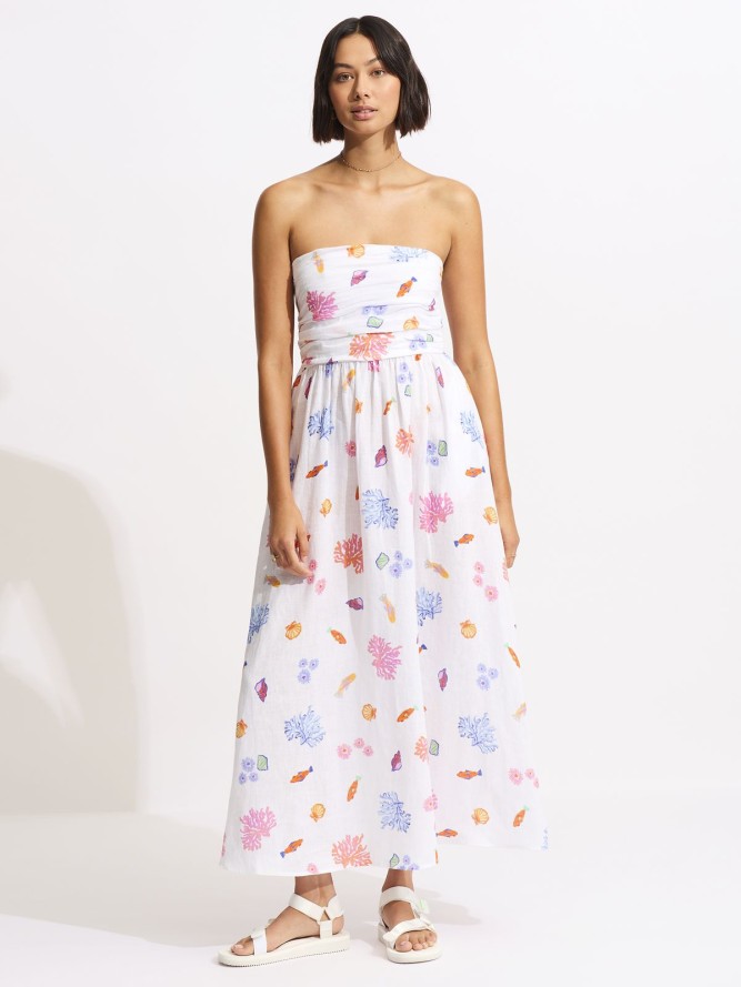 Sukienka plażowa Seafolly Under The Sea to idealny dodatek na letnie dni spędzane nad morzem. Wyróżnia się wielokolorowym wzorem, który odzwierciedla morskie inspiracje i przyciąga wzrok. Ten długa sukienka została zaprojektowana z myślą o komforcie użytkowania, doskonale sprawdzi się jako lekka osłona przed słońcem.