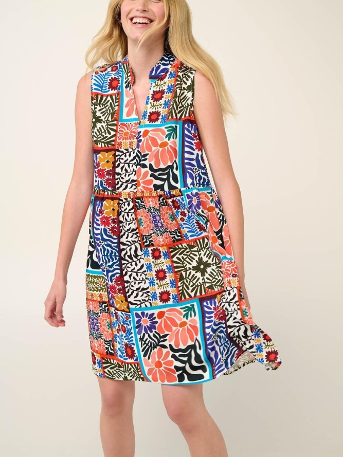 Nasza sukienka charakteryzuje się dekoltem w literę V, dodającym kobiecego uroku i podkreślającym szyję. Fasadowa wielobarwność to nie tylko modne połączenia kolorów, ale także lekkość i świeżość idealna na wakacyjne wypady. Jest to model uniwersalny, łatwy do zestawienia z ulubionymi dodatkami plażowymi.