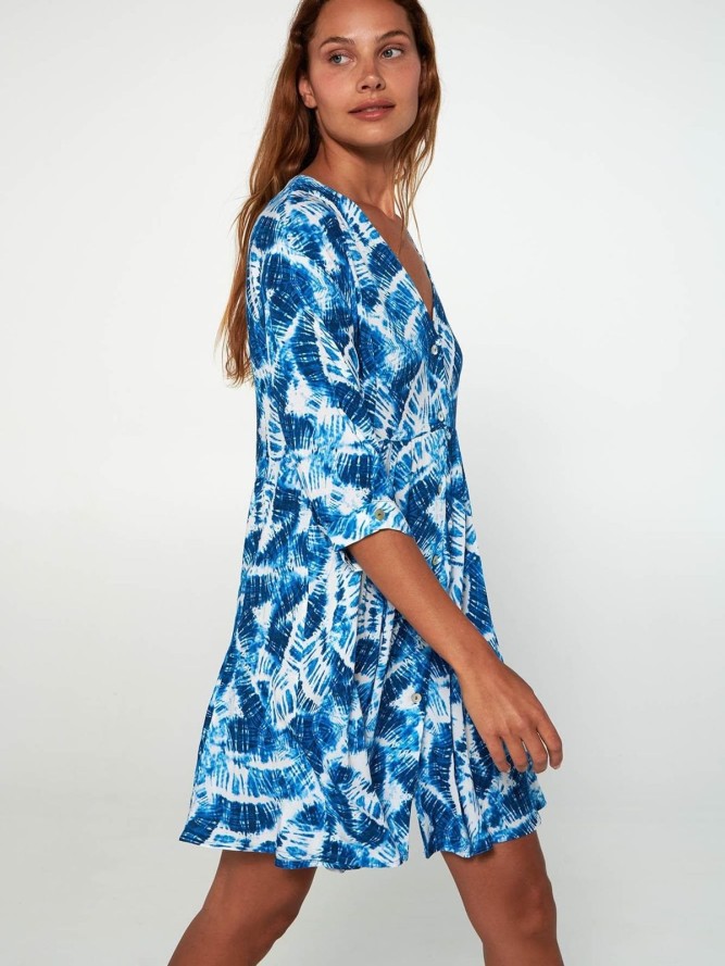 Cechy produktu, takie jak biało-niebieski kolor i krótka długość, są często wyszukiwane przez osoby poszukujące idealnej sukienki plażowej, co sprawia, że ten model staje się absolutnym must-have w Twojej wakacyjnej garderobie. Zaopatrz się w ten plażowy hit już dziś i poczuj się wyjątkowo, niezależnie od tego, gdzie zaprowadzi Cię lato!
