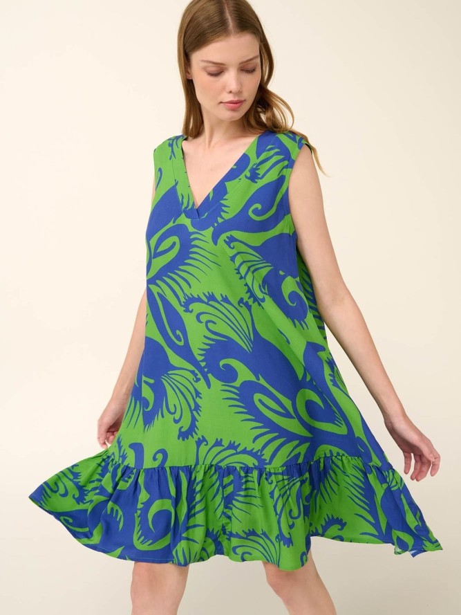 Sukienka VAMP 22421 jest nierozpinana, co sprawia, że zakładanie jej jest szybkie i wygodne. Jej krótka długość eksponuje nogi, podkreślając opaleniznę i dodając letniego charakteru każdej stylizacji.To idealny wybór na spacery po plaży, relaks w kurorcie czy spontaniczne wieczory na tarasie.