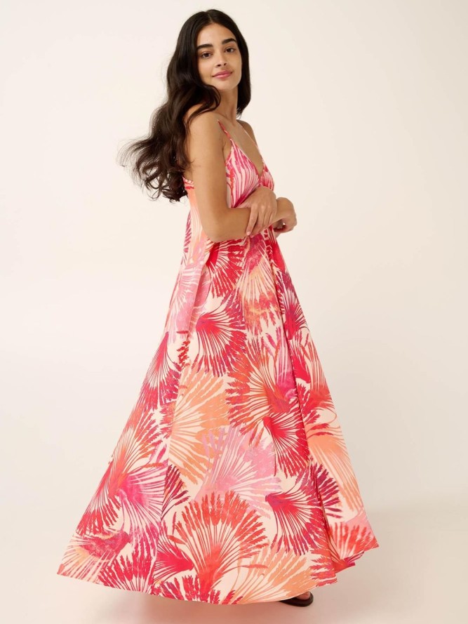 Sukienka posiada wygodny, rozkloszowany krój bez rozpinania, co dodatkowo podkreśla jej elegancki, lecz luźny styl. Fason na ramiączkach zapewnia swobodę ruchów, a odpowiednia długość sprawia, że możesz czuć się komfortowo nie tylko na plaży, ale także podczas spacerów po nadmorskich promenadach.