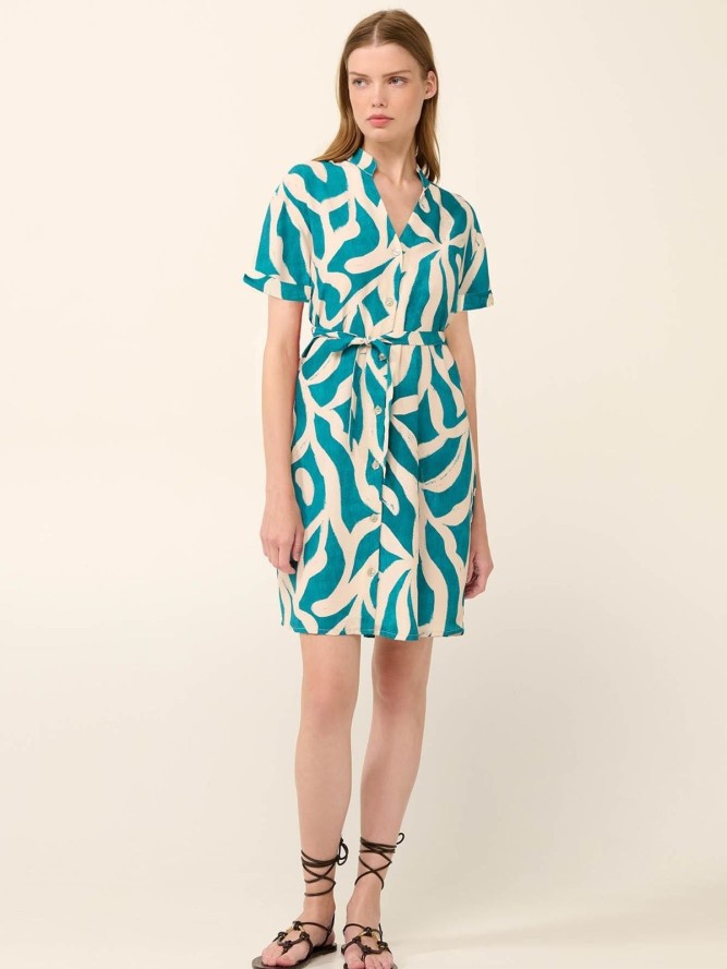 Kolorystyka tej sukienki, utrzymana w różnorodnych barwach, sprawia, że można ją łatwo dopasować do różnych dodatków. Niezależnie od tego, czy wolisz klasyczne sandały, czy modne espadryle, swoją stylizację możesz podkreślić także odpowiednią biżuterią czy kapeluszem.
