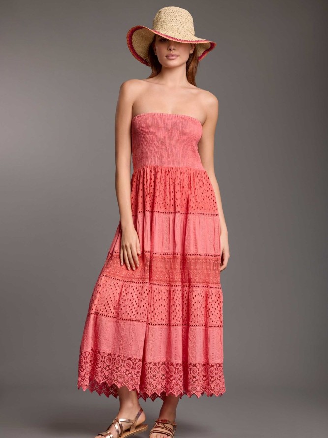 Sukienka została zaprojektowana z myślą o najwyższym komforcie użytkowania oraz modnym wyglądzie. Koralowy odcień tkaniny doskonale współgra z letnią opalenizną, podkreślając naturalne piękno każdej kobiety. Długa długość sukienki zapewnia elegancję, a zarazem swobodę ruchów, co czyni ją idealnym wyborem na każdą okazję w okresie letnim. Dekolt został subtelnie zaprojektowany, aby dodać odrobiny zmysłowości, nie odsłaniając zbyt wiele. To rozwiązanie idealne dla kobiet, które cenią sobie klasyczny styl z nutą wyrafinowanej kobiecości.