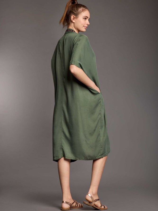 Długość sukienki jest dostosowana do potrzeb każdej kobiety – nie za krótka, ani nie za długa, co sprawia, że jest uniwersalnym wyborem.