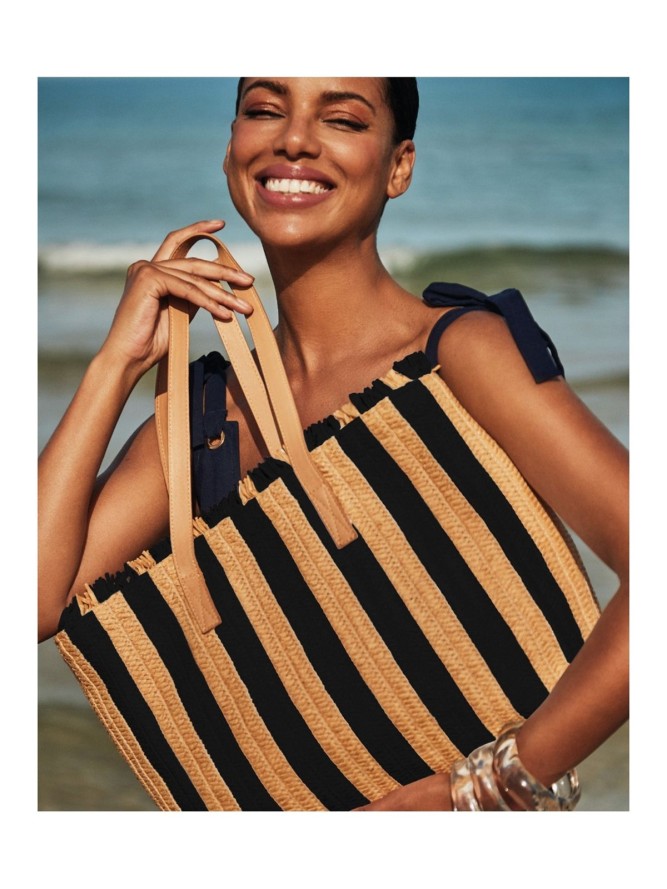 Torba oferuje dużą pojemność, dzięki czemu z łatwością pomieścisz wszystkie niezbędne rzeczy na plażę, takie jak ręcznik, krem przeciwsłoneczny czy ulubioną książkę. Wytrzymałe uchwyty zadbają o komfort noszenia, niezależnie od ciężaru zawartości.