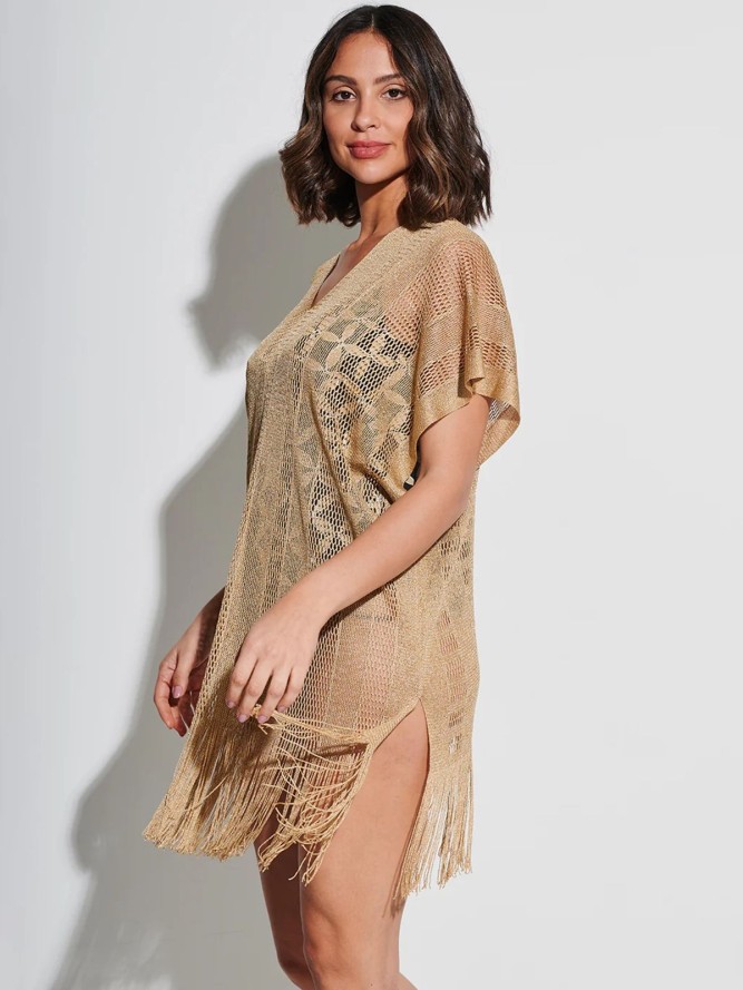 Dodatek plażowy damski TESSY Compl. Neli T620/10 złoty - tunika z dekoltem w literę V.