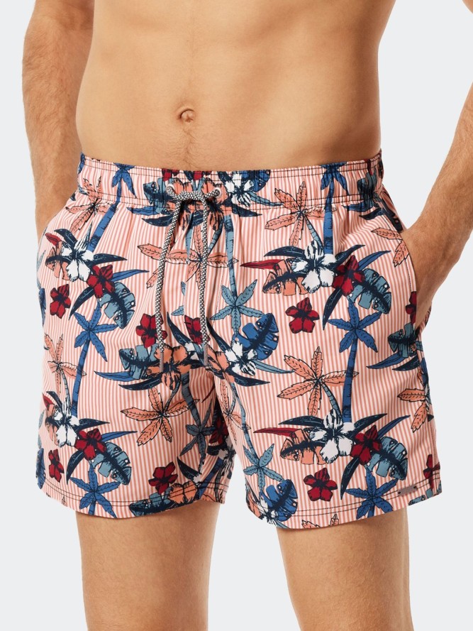 Męskie kąpielówki typu bermudy w kolorze czarnym posiadają drobny nadruk w kotwice w białym odcieniu. Posiadają dwie boczne kieszenie i jedną z tyłu zapinaną na rzep. Idealnie sprawdzą się na plażę jak i na basen. Wykończone gumką i elastyczną...