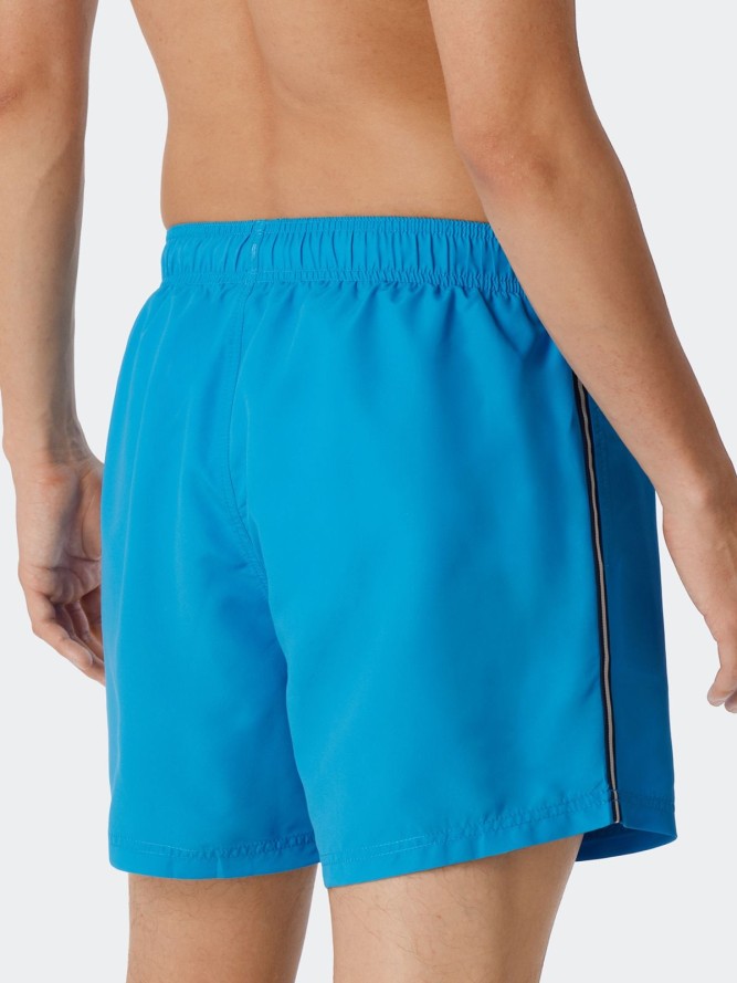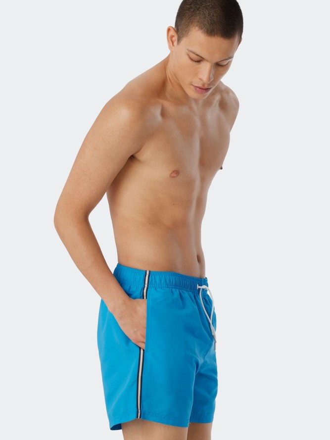 Męskie kąpielówki typu bermudy w kolorze czarnym posiadają drobny nadruk w kotwice w białym odcieniu. Posiadają dwie boczne kieszenie i jedną z tyłu zapinaną na rzep. Idealnie sprawdzą się na plażę jak i na basen. Wykończone gumką i elastyczną...
