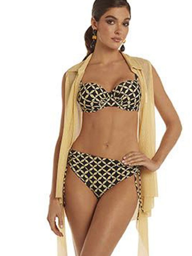 Kostium kąpielowy Roidal Binta 120.26/06 to elegancki wybór dla kobiet ceniących styl i komfort podczas wakacyjnych dni. Ten dwuczęściowy strój kąpielowy wyróżnia się nowoczesnym designem z geometrycznym motywem, który przyciąga wzrok i dodaje oryginalności. Góra stroju wyposażona jest w miseczki typu balconette, które doskonale modelują biust, nadając mu naturalny kształt, a jednocześnie zapewniając optymalne podparcie. Dół kostiumu stanowią klasyczne figi, które dzięki swojemu krojowi podkreślają kobiecą sylwetkę, zapewniając przy tym wygodę podczas noszenia. Wykonany z wysokiej jakości materiałów kąpielowych, gwarantuje odporność na działanie chloru oraz promieniowania UV, co znacząco przedłuża jego trwałość. Wybierając kostium kąpielowy Roidal Binta, zyskujesz nie tylko modny wygląd, ale także funkcjonalność i wygodę, które są nieodzowne podczas każdego pobytu na plaży. To idealna propozycja dla każdej kobiety chcącej wyróżnić się na tle innych plażowiczek.