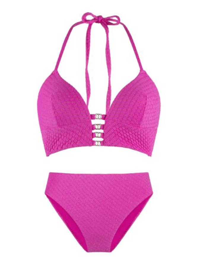 Kostium Kąpielowy Linga Dore Triangle 7718 to doskonały wybór dla miłośniczek mody plażowej, które cenią sobie zarówno elegancję, jak i komfort. Ten dwuczęściowy strój kąpielowy w kolorze fuksjowym przyciąga uwagę swoją wyrazistą barwą, idealną na letnie dni nad wodą. Góra kostiumu posiada trójkątne miseczki, które doskonale podkreślają naturalne kształty, oferując jednocześnie wygodne wsparcie. Ramiączka pozwalają na idealne dopasowanie do sylwetki. Dół charakteryzuje się klasycznym krojem fig, zapewniając komfort oraz swobodę ruchów. Wykonany z wysokiej jakości materiałów, strój gwarantuje trwałość i odporność na działanie chloru oraz promieni UV. Idealny na plażę, basen czy wakacyjne wyjazdy, ten kostium kąpielowy to must-have dla każdej kobiety, która pragnie cieszyć się modnym wyglądem i wysokim komfortem użytkowania. Dzięki swojej unikatowości i świetnemu wykonaniu, model ten jest często poszukiwanym wyborem wśród klientów.