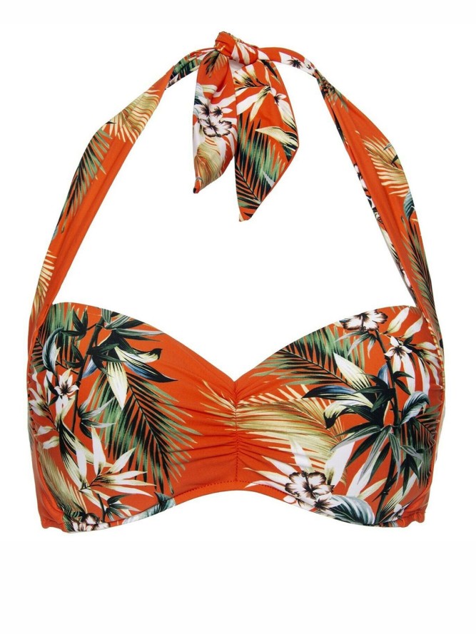 Góra od bikini w fasonie, który zbiera i unosi biust, wiązany na szyi, zapinany na plecach. Miseczki mają wbudowane kieszonki na push-up, który nie zawsze jest nam potrzebny i tym samym możemy z niego zrezygnować. Kolor pastelowy pięknie...