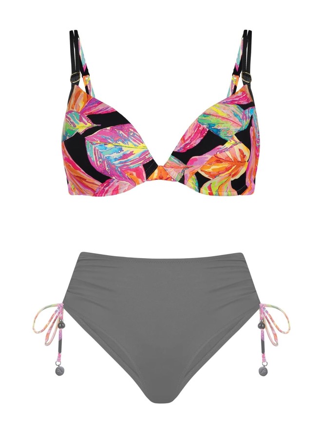 Góra od bikini z kostiumu Feba FG21H cechuje się konstrukcją typu push-up, co pozwala na subtelne wymodelowanie biustu i uzyskanie efektu pełniejszych kształtów. Miseczki są idealnie wyprofilowane, by zapewnić wsparcie i wygodę przez cały dzień na plaży. Wielokolorowy wzór dodaje energii i podkreśla opaleniznę, zapewniając modny wygląd.