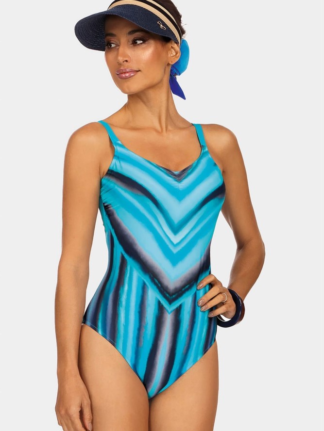 Kostium kąpielowy jednoczęściowy FEBA F33A to idealny wybór dla kobiet poszukujących stylu i wygody podczas plażowania lub pływania. Dzięki modnemu, wielokolorowemu wzorowi, kostium przyciąga uwagę i podkreśla indywidualny styl. Góra stroju...