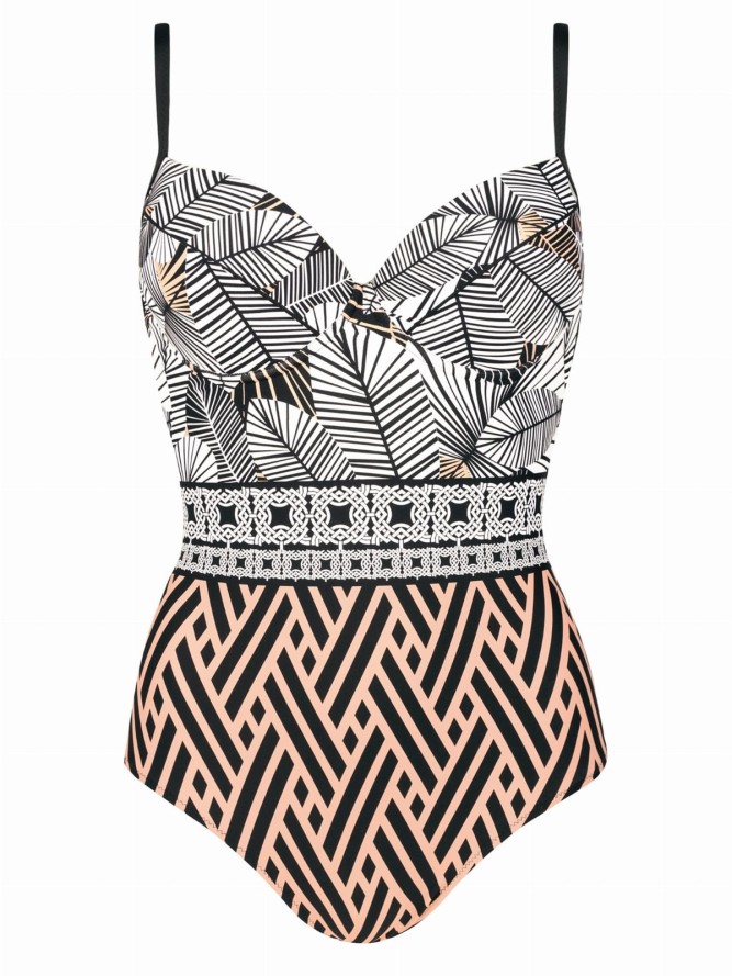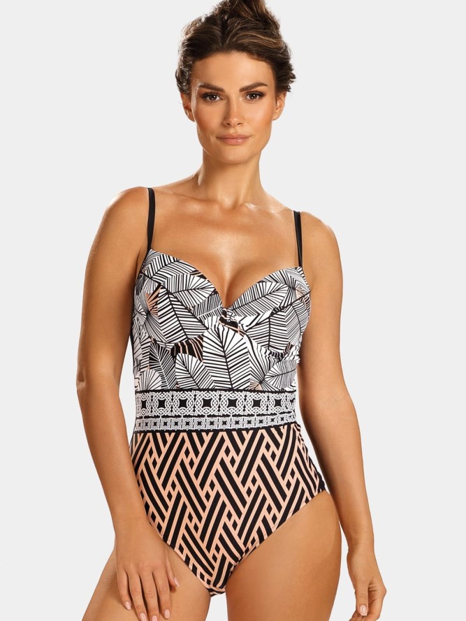 Dół kostiumu to klasyczne figi, które podkreślają kształty i zapewniają pełną swobodę ruchów. Modny motyw liściasty dodaje całości świeżości i nowoczesnego wyglądu, idealny dla pań, które pragną wyróżnić się na tle innych. Ten jednoczęściowy kostium kąpielowy doskonale wpisuje się w najnowsze trendy modowe, stanowiąc must-have tego sezonu. Wybierz kostium kąpielowy Feba F26 i ciesz się latem w niezrównanym stylu i komforcie.