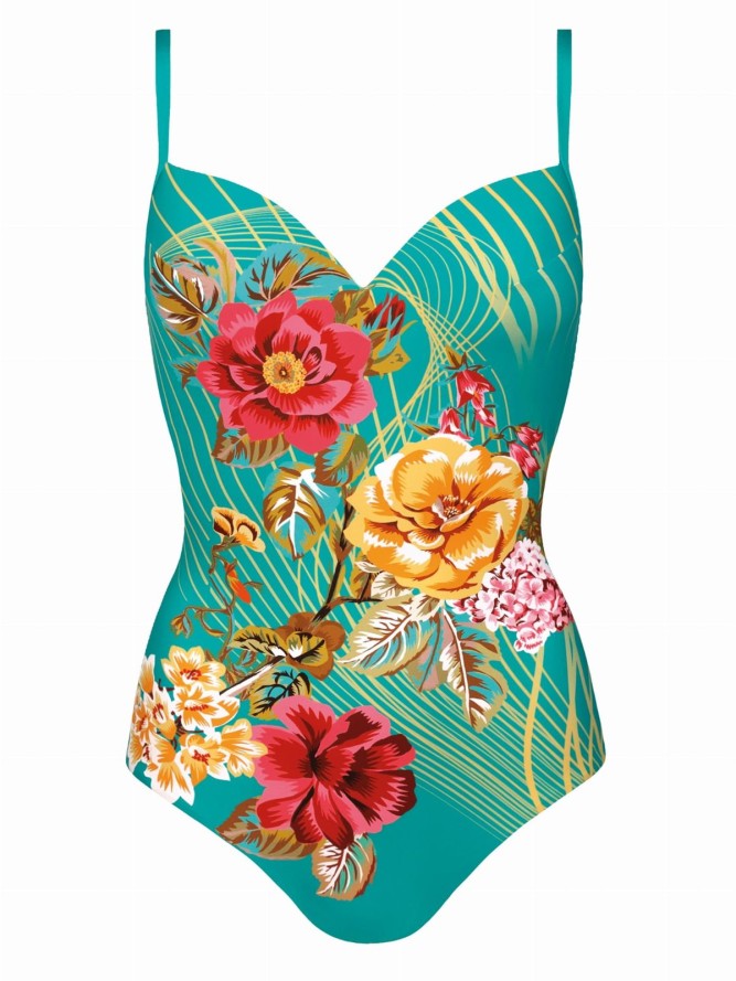 Kostium kąpielowy Feba F28C to idealny wybór dla kobiet poszukujących stylu i komfortu w jednym. Ten jednoczęściowy kostium kąpielowy łączy w sobie funkcjonalność i elegancję dzięki zastosowaniu wysokiej jakości materiałów. Góra stroju jest zaprojektowana z myślą o doskonałym podtrzymaniu biustu, co zapewnia odpowiednio wykrojona miseczka. Delikatne haftki oraz regulowane ramiączka pozwalają na perfekcyjne dopasowanie do sylwetki, co jest kluczowe podczas aktywności na plaży. Dół kostiumu charakteryzuje się klasycznym krojem majtek, które gwarantują wygodę noszenia przez cały dzień. Urokliwy motyw kwiatowy dodaje świeżości i letniego charakteru, sprawiając, że będziesz się czuć stylowo i atrakcyjnie. Jeśli szukasz kostiumu kąpielowego, który łączy w sobie modny wygląd i wygodę, to kostium F28C od Feba spełni wszystkie Twoje oczekiwania. Ciesz się pełnią lata z eleganckim strojem kąpielowym w kwiaty.