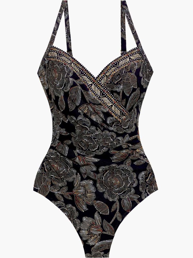 Kostium kąpielowy Miraclesuit Gali to wyjątkowy stroje jednoczęściowy, który łączy w sobie elegancję i komfort, idealny dla kobiet pragnących podkreślić swoją kobiecą sylwetkę na plaży. Wykonany z najwyższej jakości materiałów, gwarantuje wyjątkową trwałość i doskonałe dopasowanie do ciała. Jego czarno-złota kolorystyka dodaje mu szyku i klasy, czyniąc go niezastąpionym wyborem na letnie dni. Góra stroju posiada wbudowane miseczki, które zapewniają doskonałe podtrzymanie biustu i modelują jego kształt. Dół ma klasyczny krój majtek, który zapewnia pełne okrycie i wygodę noszenia. Ten jednoczęściowy kostium kąpielowy jest synonimem stylu i funkcjonalności, a dodatkowa innowacyjna konstrukcja materiału wyszczupla sylwetkę, co sprawia, że każda kobieta poczuje się w nim wyjątkowo i pewnie. Idealny wybór dla poszukujących ekskluzywnego i modnego stroju na każdą okazję nad wodą.
