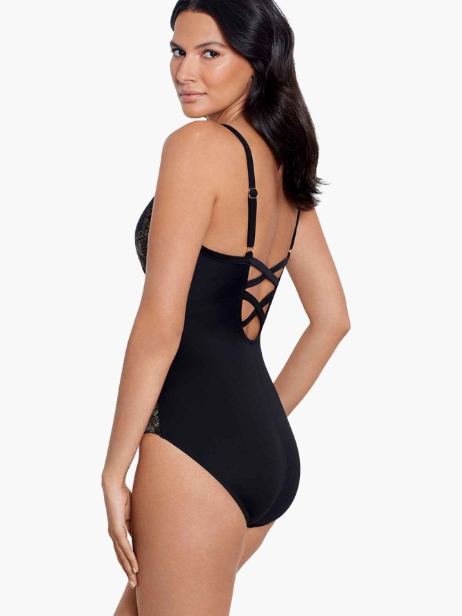 Kostium Kąpielowy Miraclesuit Gali 6558358 to esencja elegancji i komfortu, idealny wybór dla każdej kobiety poszukującej stylowego stroju na plażę lub basen. Wykonany z wysokiej jakości materiałów, ten jednoczęściowy strój zachwyca wyrafinowanym połączeniem czerni i złota, dodającym szyku i nowoczesności.